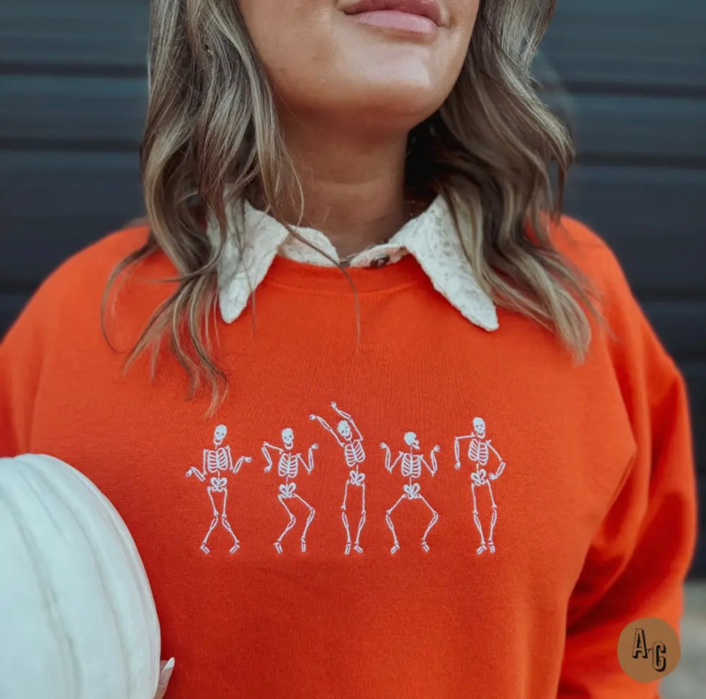 FINAL SALE Orange Dancing Skeletons Sweatshirt