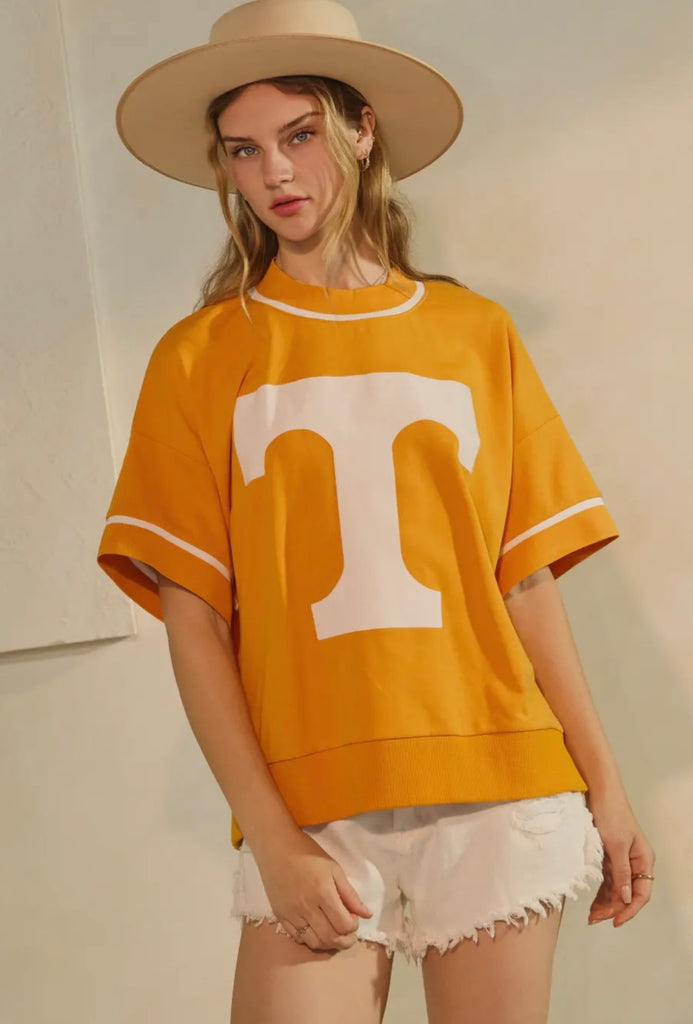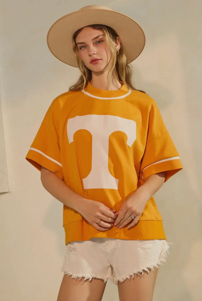 Cheer on the Vols in standout style with our Oversized Orange & White Short Sleeve Game Day Sweatshirt!